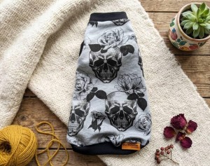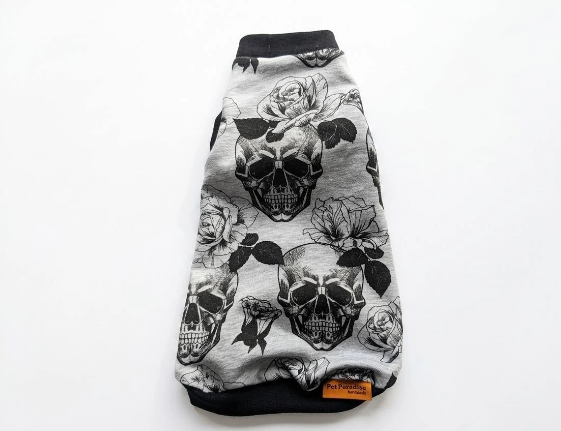 Halloweenowe ubranko dla kota czaszki na szarym tle