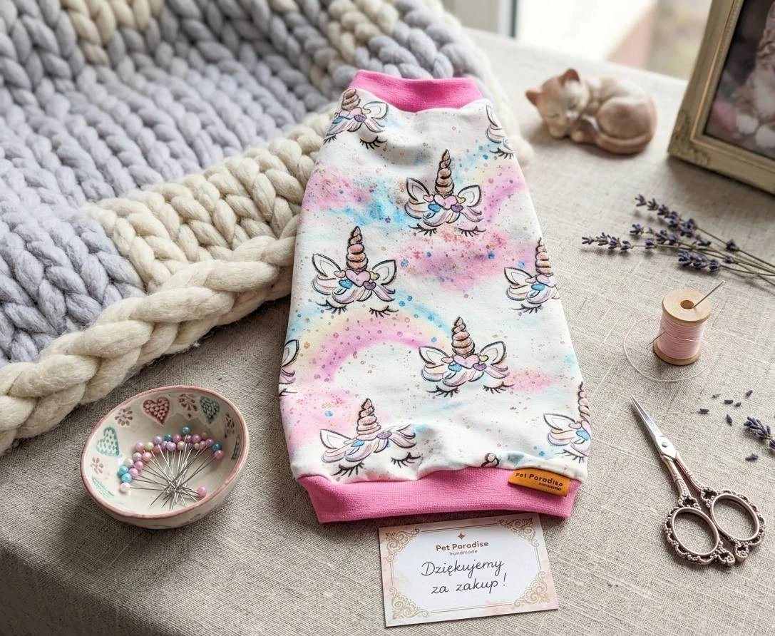 Bluzeczka dla kota Jednorożec – pastelowy print