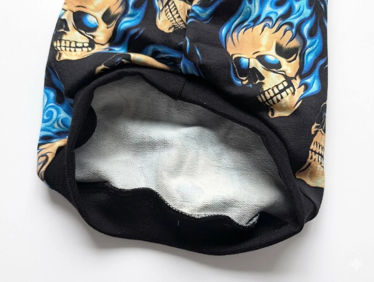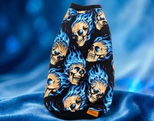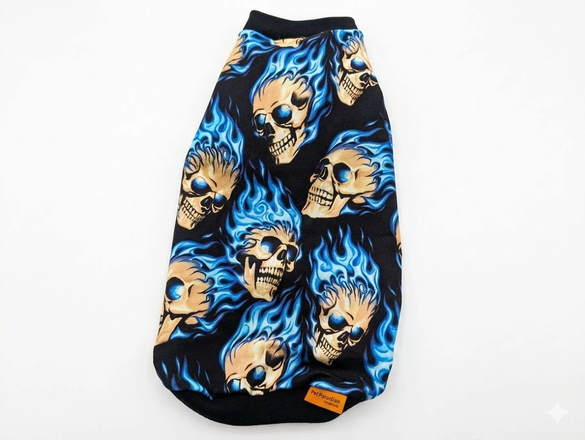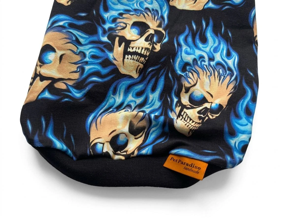 Ubranko dla kota z motywem czaszek i niebieskich płomieni